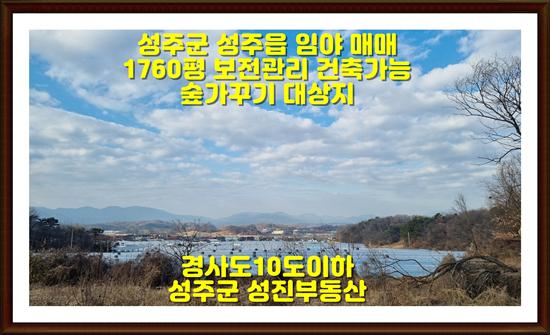 매물 기본 정보 소재지: 성주군 성주읍 지목: 임야 지역·지구: 보전관리지역 임야면적: 5,592㎡ (약 1,760평) 매매가: 평당 10만 원
