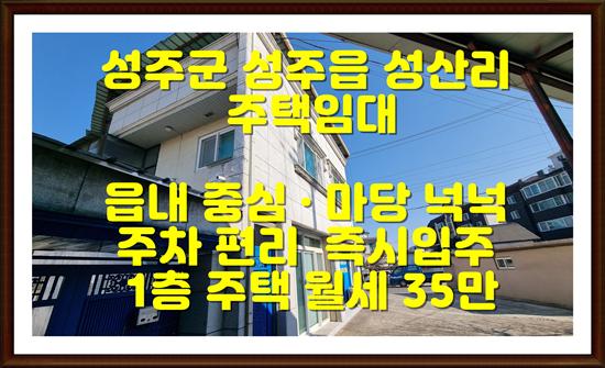 소형 주택을 찾으시는 분, 성주읍 내 생활 편의성 좋은 임대주택을 원하시는 분께 추천드립니다.