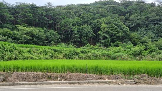 2차선도로를 50m를접하고있고 공기좋고 풍치좋은 위치에