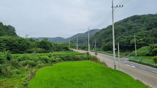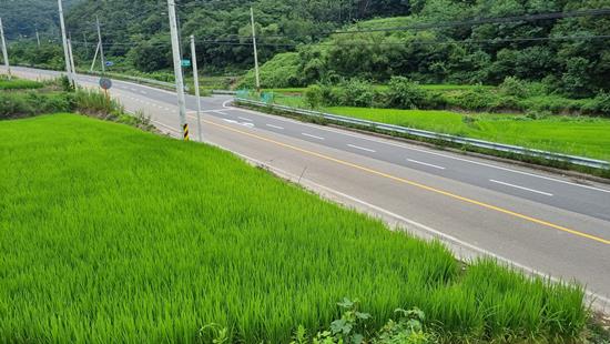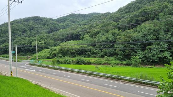 2차선도로에 통행이 많지않아 비교적한적한 시골마을인근이고