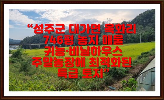 ✅ 매물 개요 소재지: 성주군 대가면 옥화리 지목: 답 지역: 농림지역(농업진흥구역) 면적: 2,468㎡ (746평) 도로: 3m 도로 접함 매매가: 9500만원