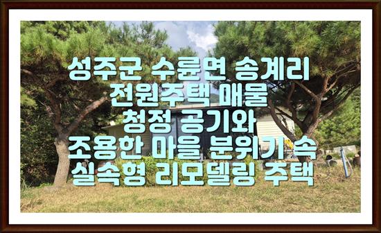 [ 성주군 수륜면 송계리 전원주택 매물] 청정 공기와 조용한 마을 분위기 속, 실속형 리모델링 주택